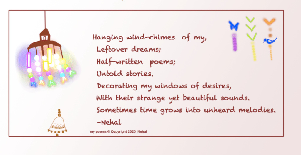 Daily Musings, English Poetry, My Poems મારી કવિતા, Nehal - English Poems, Nehal નેહલ नेहल, Poetry Daily Musings : 16 Nehal Background artwork by Nehal Share this: Click to share on X (Opens in new window) X Click to share on Facebook (Opens in new window) Facebook Click to share on WhatsApp (Opens in new window) WhatsApp Click to share on Pinterest (Opens in new window) Pinterest Click to share on Tumblr (Opens in new window) Tumblr More Click to print (Opens in new window) Print Click to email a link to a friend (Opens in new window) Email Like Loading... Related Published by Nehal I usually write in my mother tongue Gujarati and sometimes in Hindi and English. Nehal’s world is at the crossroads of my inner and outer worlds, hope you like the journey… View all posts by Nehal