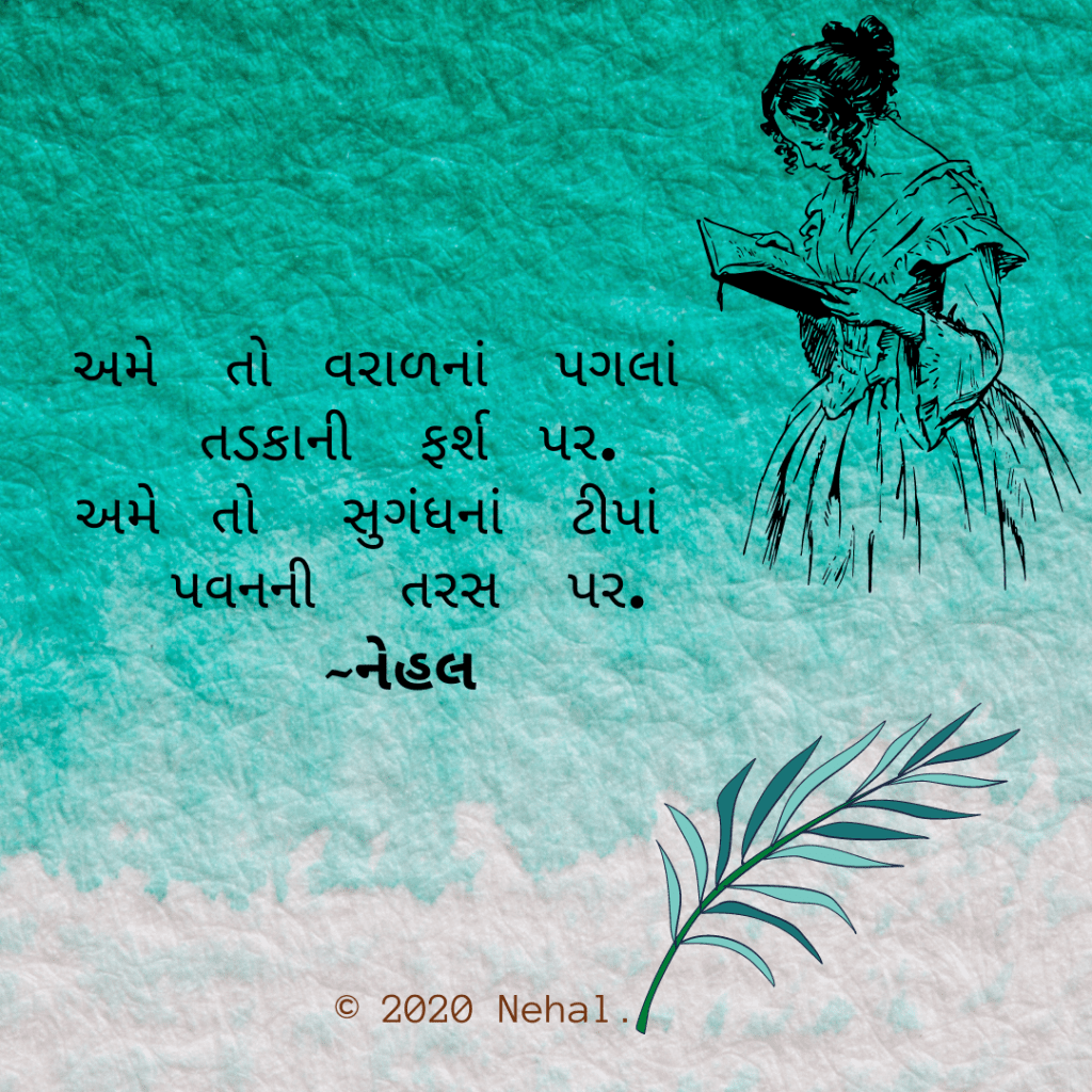 નેહલ, Daily Musings, Gujarati Kavita ગુજરાતી કવિતા, My Poems મારી કવિતા, Nehal નેહલ नेहल, Poetry Daily Musings : 20 Nehal નેહલ Share this: Click to share on X (Opens in new window) X Click to share on Facebook (Opens in new window) Facebook Click to share on WhatsApp (Opens in new window) WhatsApp Click to share on Pinterest (Opens in new window) Pinterest Click to share on Tumblr (Opens in new window) Tumblr More Click to print (Opens in new window) Print Click to email a link to a friend (Opens in new window) Email Like Loading... Related Published by Nehal I usually write in my mother tongue Gujarati and sometimes in Hindi and English. Nehal’s world is at the crossroads of my inner and outer worlds, hope you like the journey… View all posts by Nehal