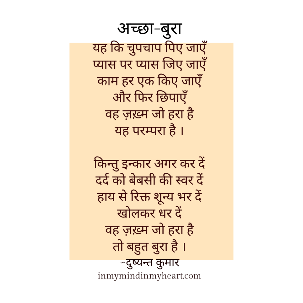 Daily Musings, Dushyant kumar दुष्यन्त कुमार, Hindi Kavita हिन्दी कविता, Poetry Daily Musings : 31 Dushyant Kumarदुष्यन्त कुमार Digital artwork by Nehal Share this: Click to share on X (Opens in new window) X Click to share on Facebook (Opens in new window) Facebook Click to share on WhatsApp (Opens in new window) WhatsApp Click to share on Pinterest (Opens in new window) Pinterest Click to share on Tumblr (Opens in new window) Tumblr More Click to print (Opens in new window) Print Click to email a link to a friend (Opens in new window) Email Like Loading... Related Published by Nehal I usually write in my mother tongue Gujarati and sometimes in Hindi and English. Nehal’s world is at the crossroads of my inner and outer worlds, hope you like the journey… View all posts by Nehal