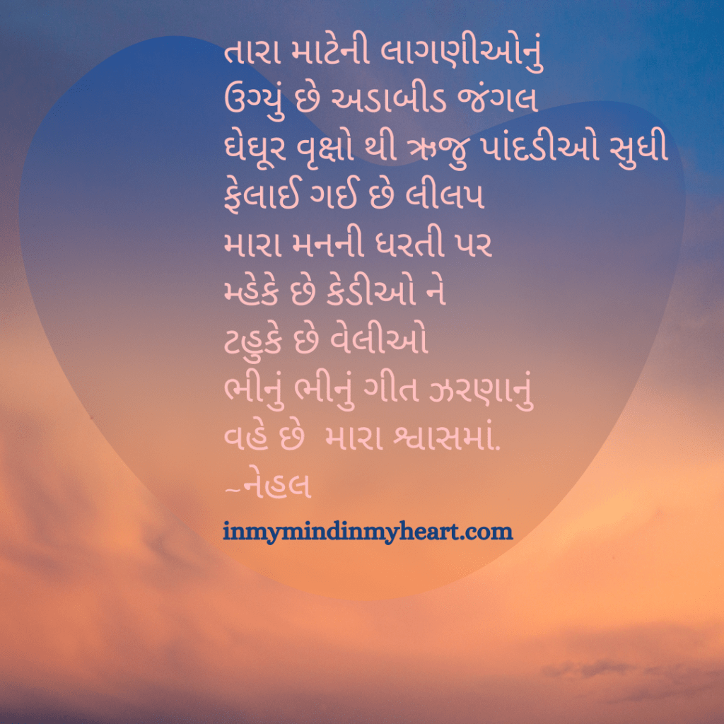 I usually write in my mother tongue Gujarati and sometimes in Hindi and English. Nehal’s world is at the crossroads of my inner and outer worlds, hope you like the journey… View all posts by Nehal