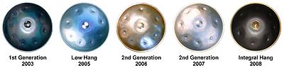 The Hang uses some of the same basic physical principles as a steelpan, but modified in such a way as to act as a Helmholtz resonator ( Helmholtz resonance or wind throb is the phenomenon of air resonance in a cavity, such as when one blows across the top of an empty bottle. The name comes from a device created in the 1850s by Hermann von Helmholtz, the Helmholtz resonator, which he used to identify the various frequencies or musical pitches present in music and other complex sounds. ). The creation of the Hang was the result of many years of research on the steelpan and other instruments. The inventors of the Hang have continued to refine the shape and materials and have produced several variations over the years. ( source : wikipedia )