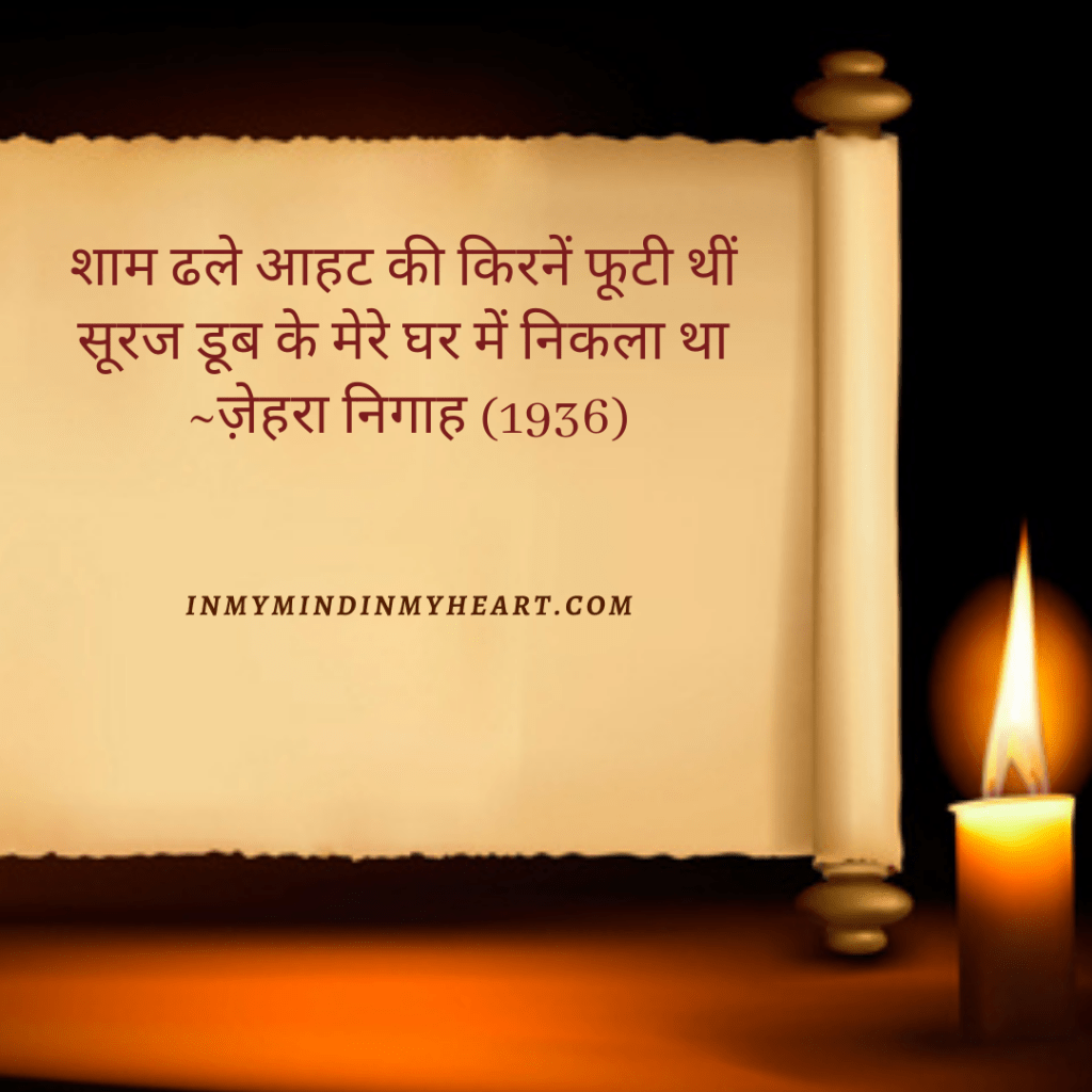 चुनिंदा अशआर, Daily Musings, Hindi Kavita हिन्दी कविता, Poetry, Zehra Nigaah ज़ेहरा निगाह आजका चुनिंदा अशआर : ज़ेहरा निगाह Share this: Click to share on X (Opens in new window) X Click to share on Facebook (Opens in new window) Facebook Click to share on WhatsApp (Opens in new window) WhatsApp Click to share on Pinterest (Opens in new window) Pinterest Click to share on Tumblr (Opens in new window) Tumblr More Click to print (Opens in new window) Print Click to email a link to a friend (Opens in new window) Email Like Loading... Related Published by Nehal I usually write in my mother tongue Gujarati and sometimes in Hindi and English. Nehal’s world is at the crossroads of my inner and outer worlds, hope you like the journey… View all posts by Nehal