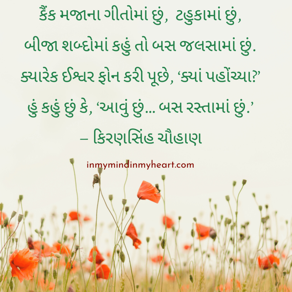 ચૂંટેલા શેર, Daily Musings, Gujarati Kavita ગુજરાતી કવિતા, Kiransinh Chauhan કિરણસિંહ ચૌહાણ, Poetry આજની પંક્તિઓ : કિરણસિંહ ચૌહાણ Share this: Click to share on X (Opens in new window) X Click to share on Facebook (Opens in new window) Facebook Click to share on WhatsApp (Opens in new window) WhatsApp Click to share on Pinterest (Opens in new window) Pinterest Click to share on Tumblr (Opens in new window) Tumblr More Click to print (Opens in new window) Print Click to email a link to a friend (Opens in new window) Email Like Loading... Related Published by Nehal I usually write in my mother tongue Gujarati and sometimes in Hindi and English. Nehal’s world is at the crossroads of my inner and outer worlds, hope you like the journey… View all posts by Nehal