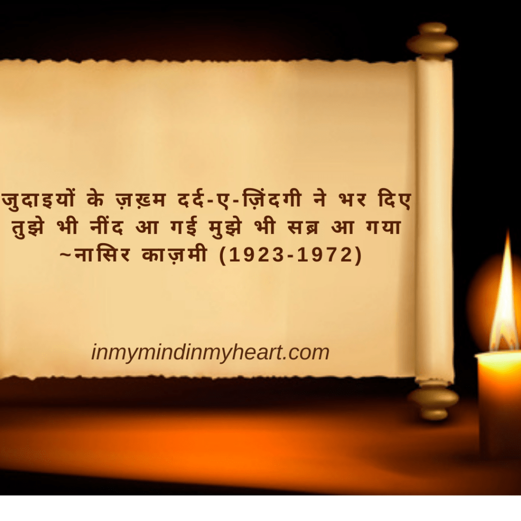 चुनिंदा अशआर, Hindi / Urdu Ghazal, Hindi Kavita हिन्दी कविता, Nasir Kazmi नासिर काज़मी, Poetry आज का चुनिंदा अशआर : नासिर काज़मी Share this: Click to share on X (Opens in new window) X Click to share on Facebook (Opens in new window) Facebook Click to share on WhatsApp (Opens in new window) WhatsApp Click to share on Pinterest (Opens in new window) Pinterest Click to share on Tumblr (Opens in new window) Tumblr More Click to print (Opens in new window) Print Click to email a link to a friend (Opens in new window) Email Like Loading... Related Published by Nehal I usually write in my mother tongue Gujarati and sometimes in Hindi and English. Nehal’s world is at the crossroads of my inner and outer worlds, hope you like the journey… View all posts by Nehal