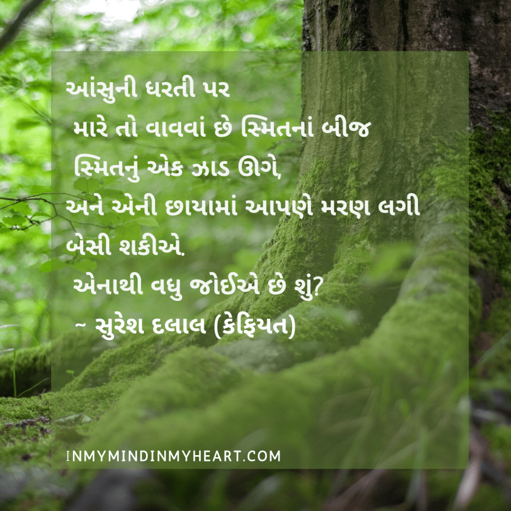 ચૂંટેલા શેર, Gujarati Kavita ગુજરાતી કવિતા, Poetry, Suresh Dalal સુરેશ દલાલ આજની પંક્તિઓ : સુરેશ દલાલ Share this: Click to share on X (Opens in new window) X Click to share on Facebook (Opens in new window) Facebook Click to share on WhatsApp (Opens in new window) WhatsApp Click to share on Pinterest (Opens in new window) Pinterest Click to share on Tumblr (Opens in new window) Tumblr More Click to print (Opens in new window) Print Click to email a link to a friend (Opens in new window) Email Like Loading... Related Published by Nehal I usually write in my mother tongue Gujarati and sometimes in Hindi and English. Nehal’s world is at the crossroads of my inner and outer worlds, hope you like the journey… View all posts by Nehal