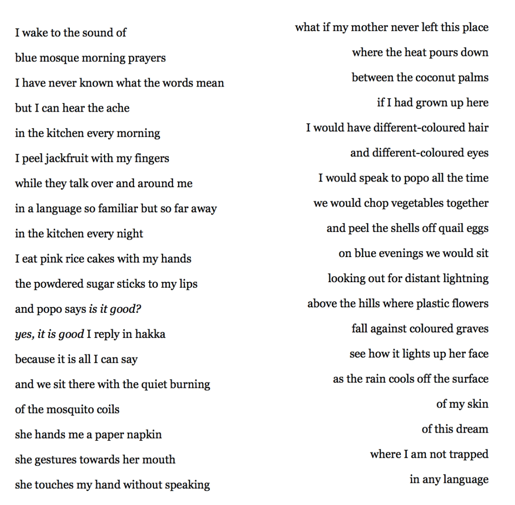 English Poetry, Nina Mingya Powles, Poetry Mother Tongue: Nina Powels ~ By Nina Mingya Powles source: scum-mag.com image source:Academy of New Zealand Literature Share this: Click to share on X (Opens in new window) X Click to share on Facebook (Opens in new window) Facebook Click to share on WhatsApp (Opens in new window) WhatsApp Click to share on Pinterest (Opens in new window) Pinterest Click to share on Tumblr (Opens in new window) Tumblr More Click to print (Opens in new window) Print Click to email a link to a friend (Opens in new window) Email Like Loading... Related Published by Nehal I usually write in my mother tongue Gujarati and sometimes in Hindi and English. Nehal’s world is at the crossroads of my inner and outer worlds, hope you like the journey… View all posts by Nehal